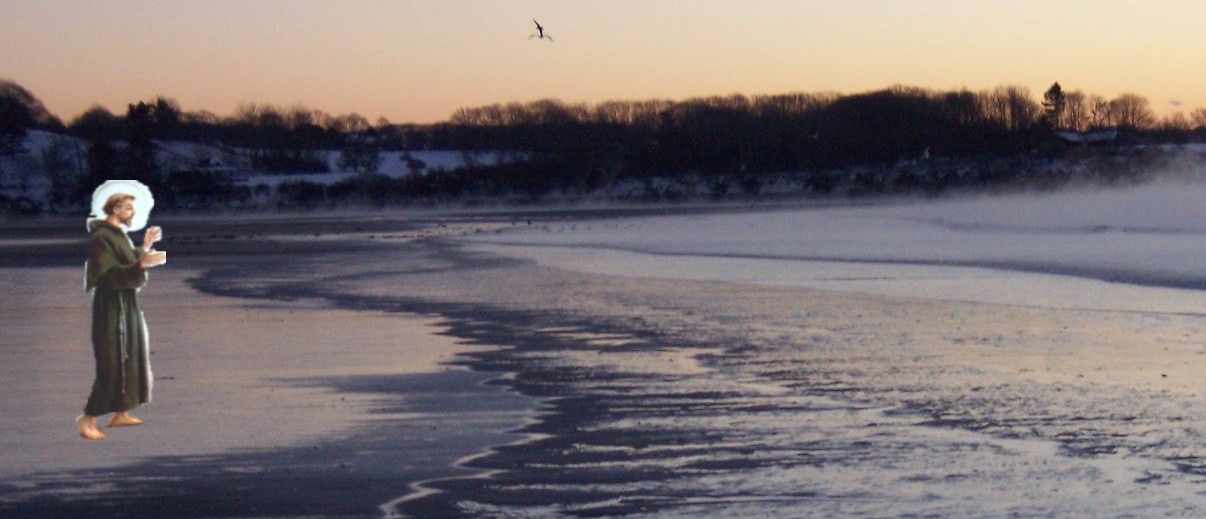St. Francis blessing the birds at Higgins Beach. The dogs, not so much…