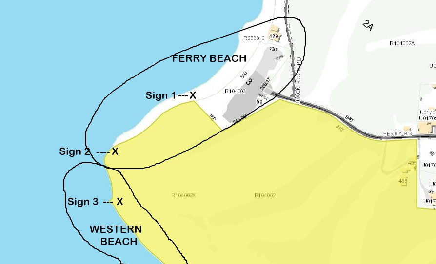 The new sign that went up on Ferry Beach last week.
